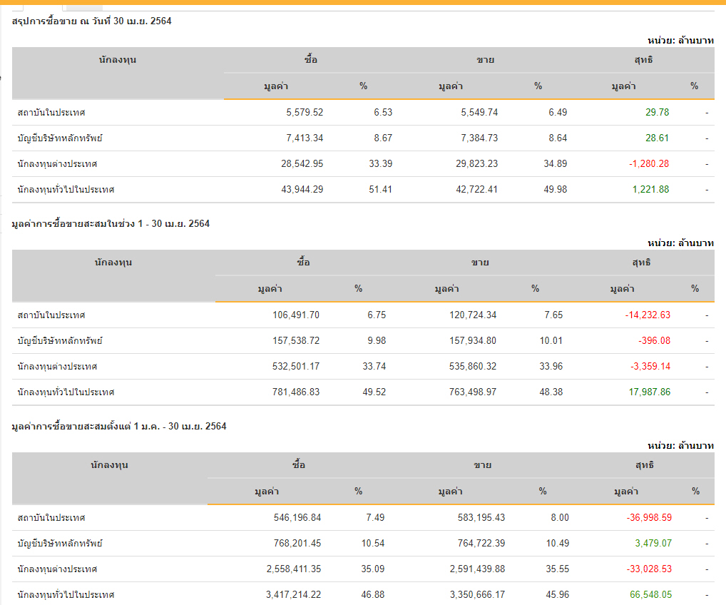 ...........ยอดปิดท้ายเดือนเมษายน2564 ผู้กองซื้อหนักหน่วงช่วยพยุงSET 30ล้านบาท........