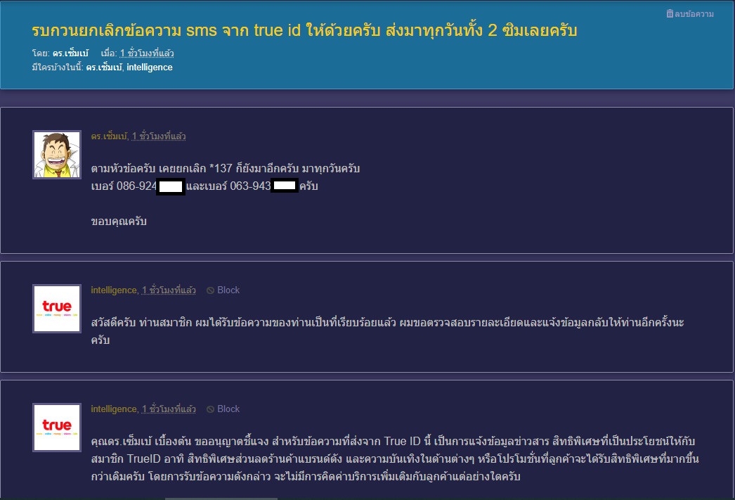 ส่งข้อความหาคุณ intelligence ขอยกเลิกข้อความจาก TrueID ส่งมาทุกวัน จนรำคาญ คำตอบที่ได้ตามนี้ครับ