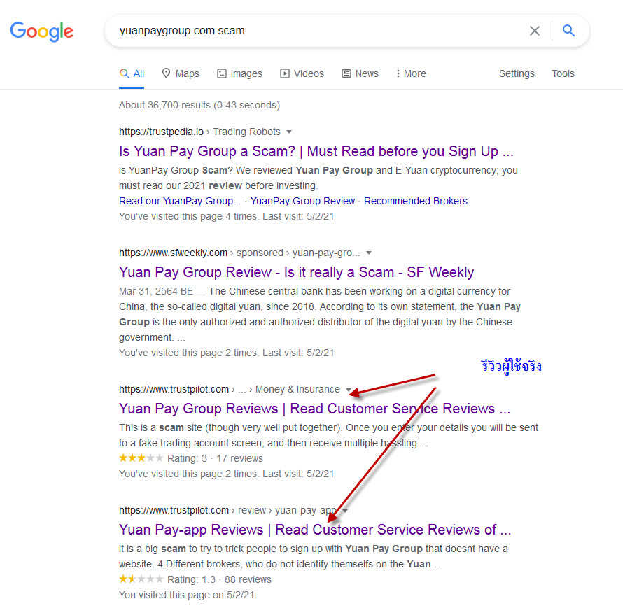 และถ้ากูเกิ้ล yuanpaygroup ต้องไปอ่านรีวิวลำดับหลังจะเป็นรีวิวจากผู้ใช้งานจริง