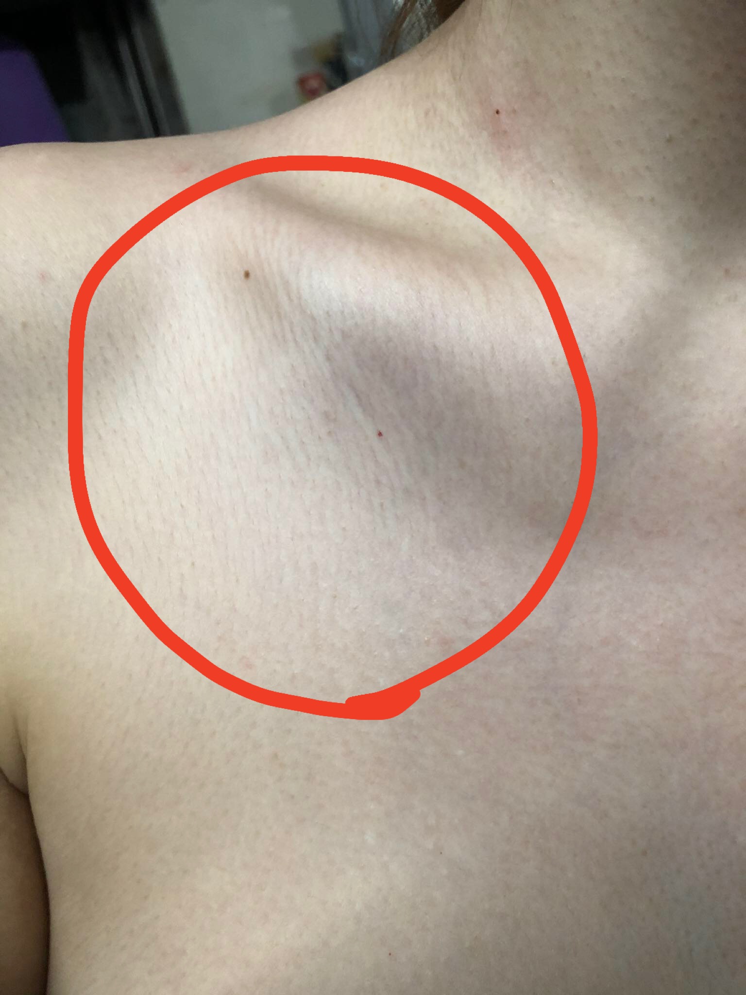 พอวันนี้มาสังเกตตัวเองตอนส่องกระจก เห็นตรงแถวหน้าอกเป็นแดงๆ จะเหมือนเป็นเส้นๆแตกๆแต่ก็ยังไม่ใช่