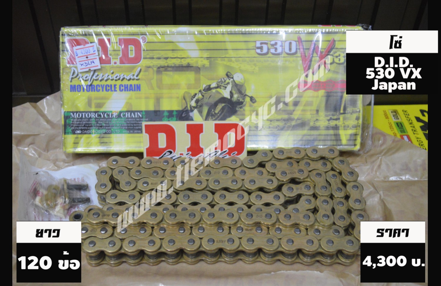 - 530VX-120L X-Ring Japan (สีทอง) แบบย้ำ ปกติ 4,300 บาท ลดเหลือ 3,870 บาท