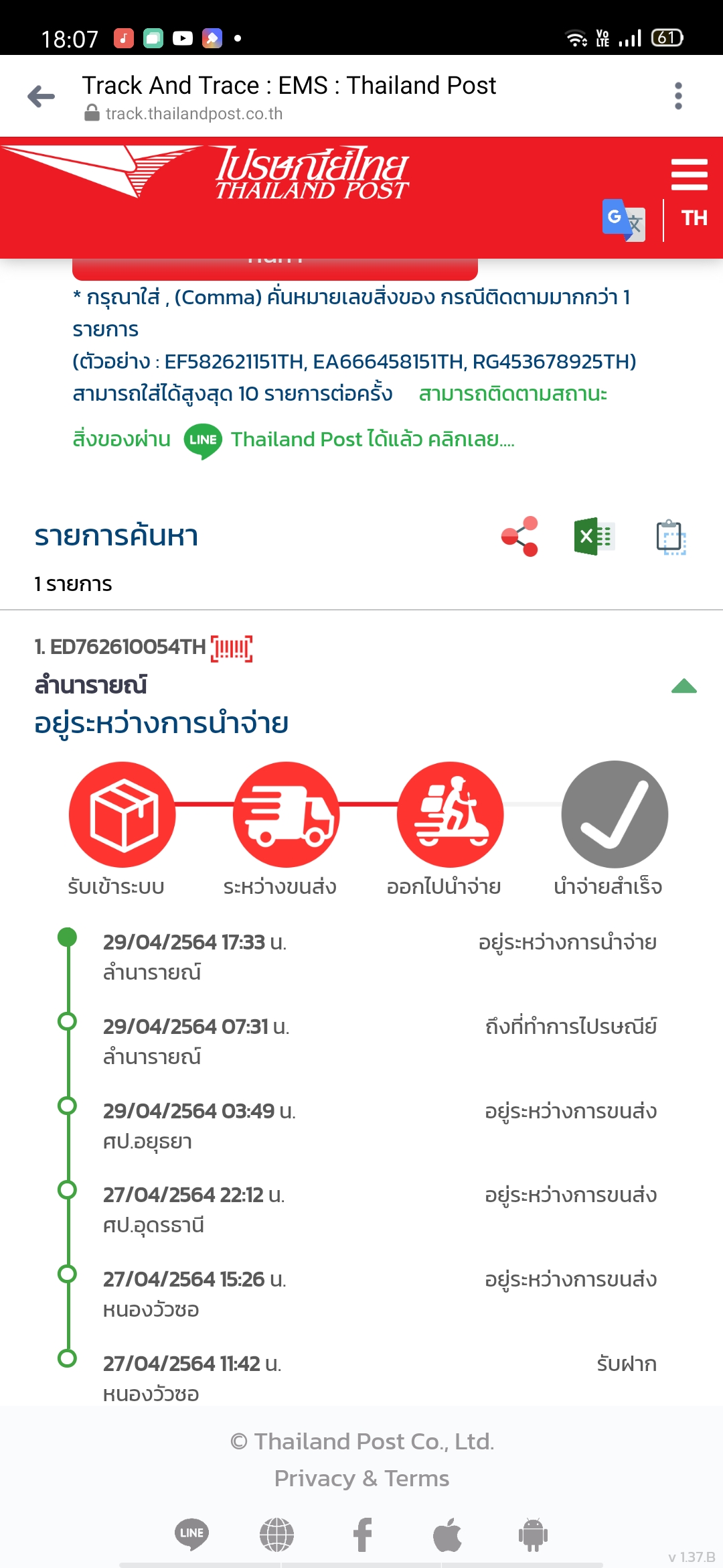 เช็คพัสดุแล้วขึ้นแบบนี้คืออะไรครับ ทั้งที่รอรับของอยู่บ้าน ems