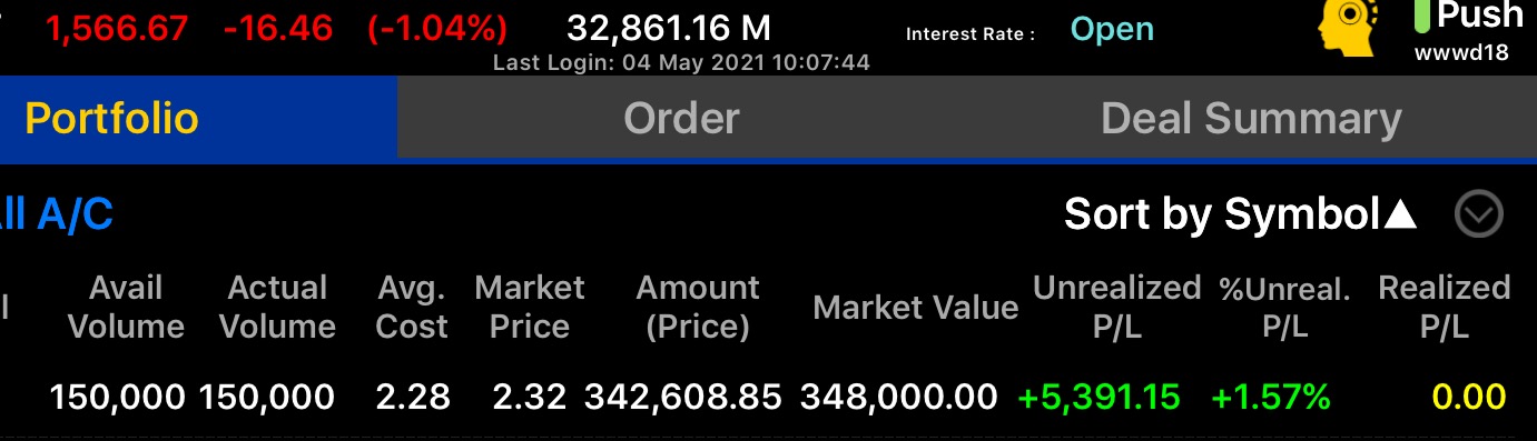 หุ้นที่เริ่มซื้อวันศุกร์ยังบวกอยู่ 0.45% วันนี้ลุ้นขึ้นต่อครับ