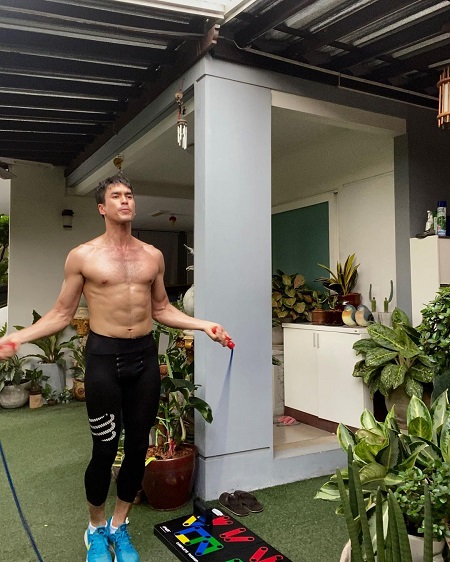 ด้วยการถอดเสื้อกระโดดเชือก รีดเหงื่อโชว์หุ่นล่ำ เผยให้เห็นซิกส์แพ็กเป็นมัดๆ กลางอินสตาแกรมส่วนตัว