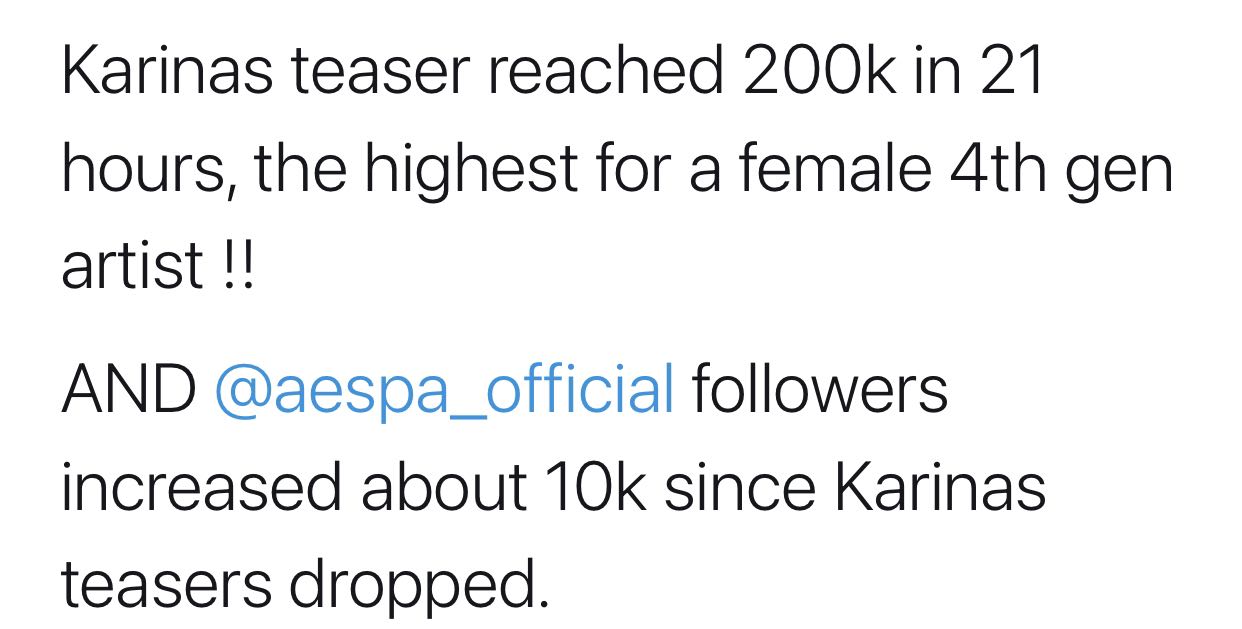 และ @aespa_official ผู้ติดตามเพิ่มขึ้นประมาณ 10,000 คนตั้งแต่ทีเซอร์ของ Karina ถูกปล่อยออกมา