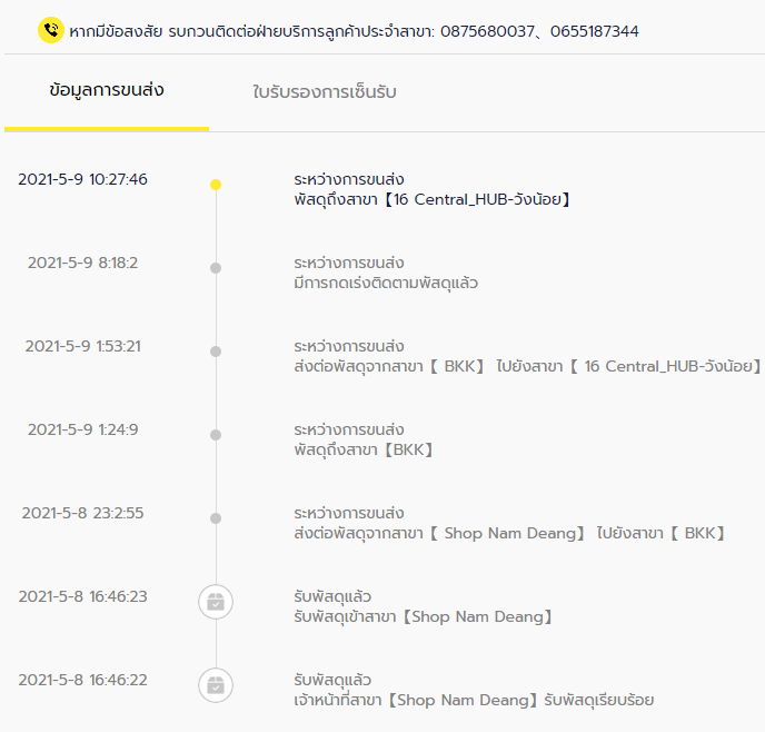 ตอนแรกไม่อัพเดตเลย จนต้องกดเร่งติดตามพัสดุ โทรไปก็ไม่รับสาย คืองง