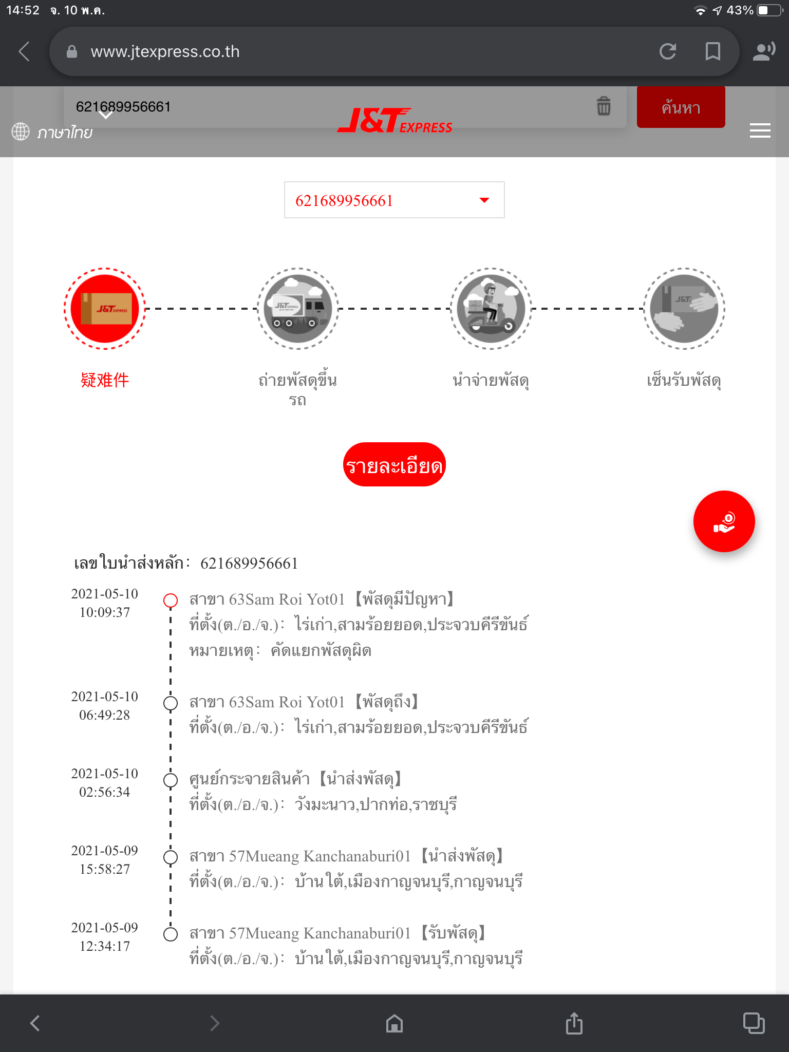 J&T สถานะขึ้นว่า พัสดุมีปัญหาคัดแยกสินค้าผิด แล้วของคือขนมกังวลมากว่าจะเสียหาย จะได้ของมั้ย?