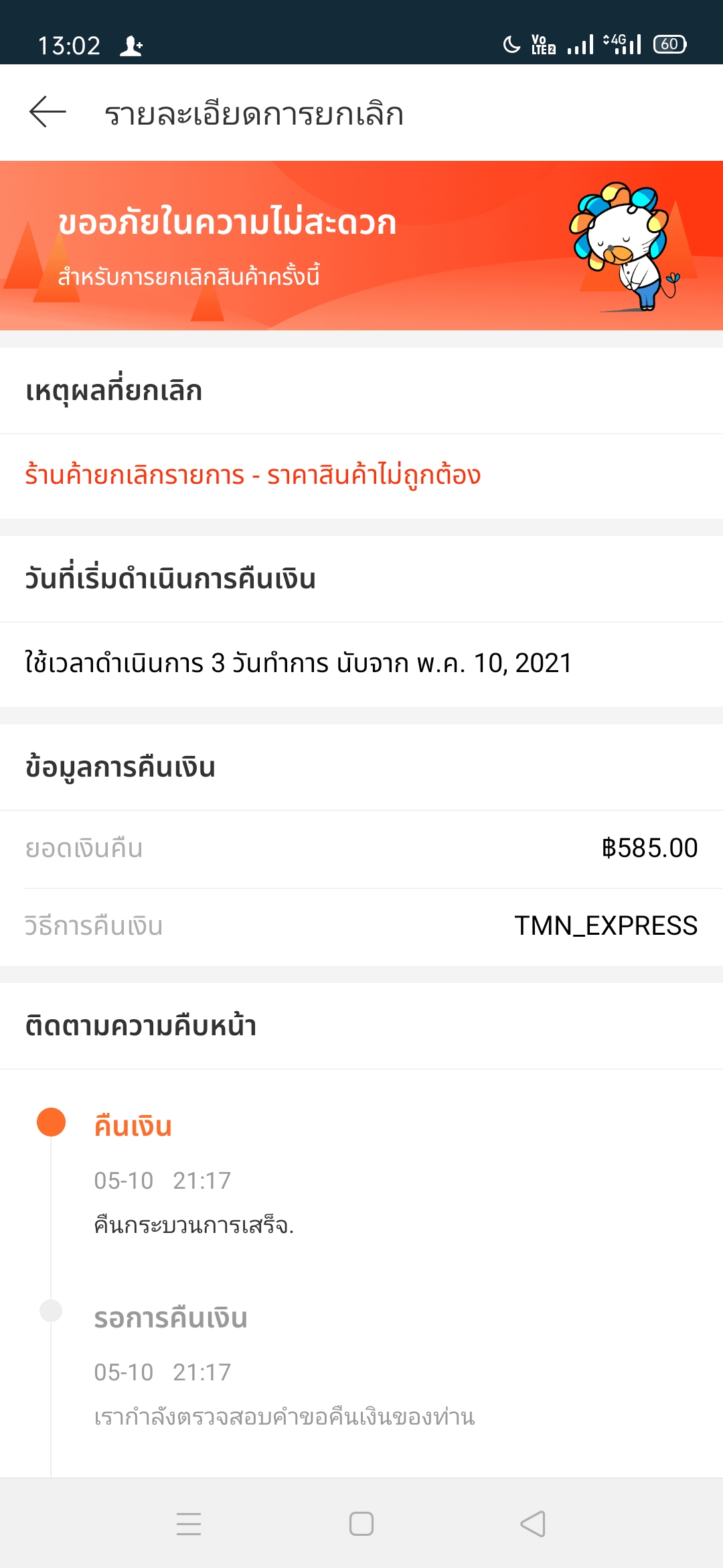 สั่งของจากLazadaผ่านทรูมันนี่วอเลตแล้วยกเลิกจะได้เงินคืนทางไหน