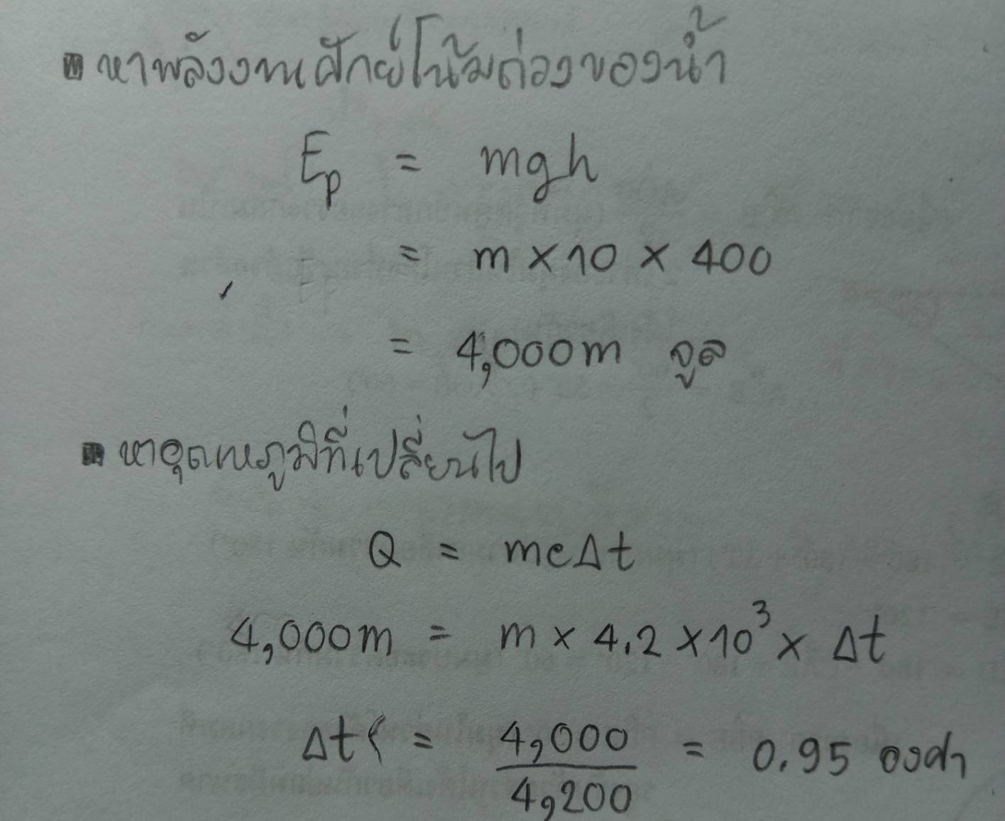 โจทย์พลังงานศักย์และความจุความร้อน