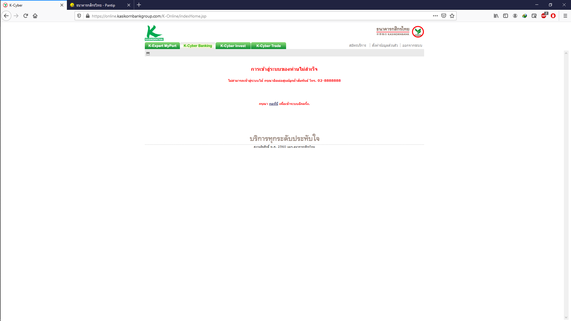 ธนาคารกสิกรไทย เข้าk-cyber ไม่ได้