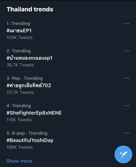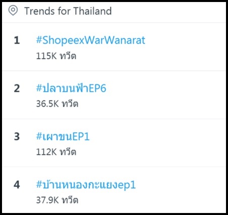 วันนี้ติดเทรนด์ถึง 2 แท็กกันเลยทีเดียว ทั้ง #เขยบ้านไร่สะใภ้ไฮโซxเข้มมุก และ #แม็คโครฟู้ดเฟสติวัลxมุก ที่สำคัญคือยอดทวิตแสนอัพด้วยกันทั้งคู่ถือว่าตอนนี้ทั้งเข้มและมุกดาก