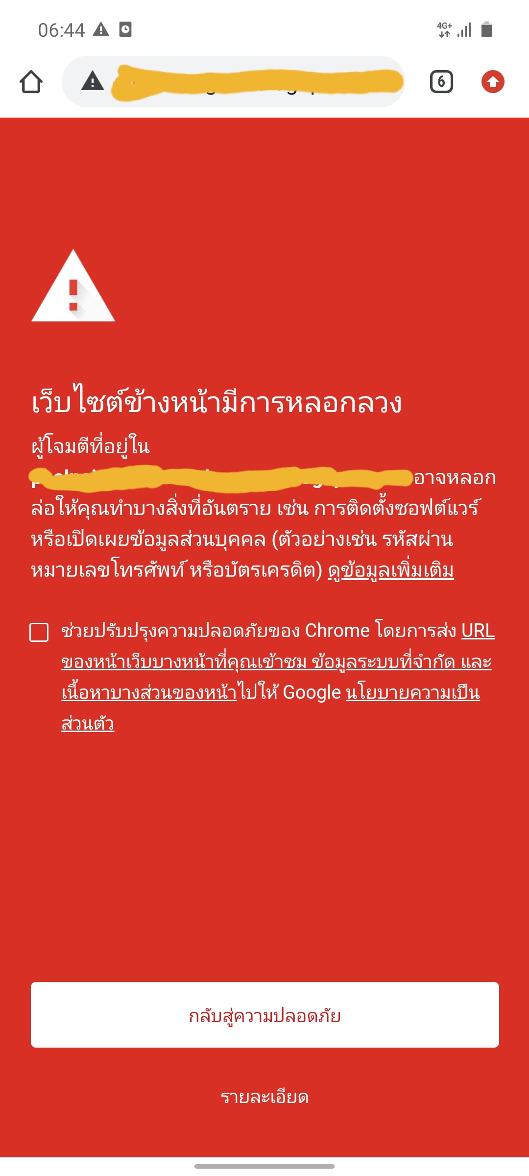 คลิกลิ้งค์แล้วขึ้นว่าไม่ปลอดภัยตามภาพ