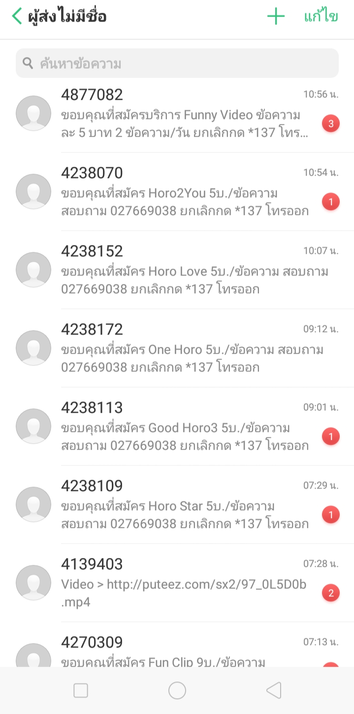 เบอร์ผมไม่เคยสมัคร sms ตังมีหลายสิบบาทโดน sms 4238099 ส่งมากวนใจแถมหักตังจนหมดตั้งแต่เมื่อวาน ยกเลิกโดย *137 กด2 แล้ว แต่เมื่อสักครู่ก็ส่ง sms มาอีกแถมหักตังจนหมด จนไม่มีตังโทรติดต่อ call center รบกวน