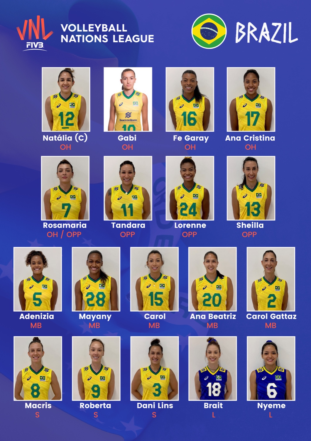team roster บราซิล VNL 2021 🇧🇷 คิดว่าใครจะได้ไปไฟนอลวอล์คที่โอลิมปิค