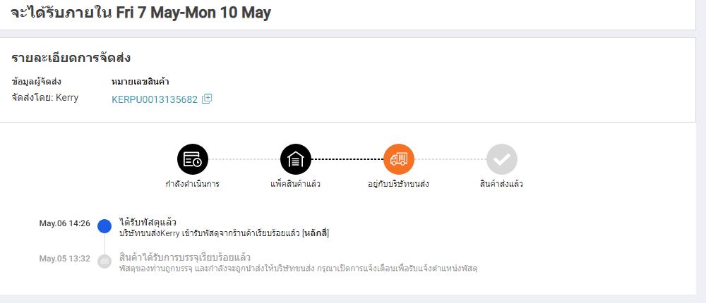 คือทำรายการสั่งซื้อไปเมื่อ 17/6/19 ชำระเงินเรียบร้อย ได้ส่วนลดจากช่วงโปรโมชั่นซึ่งลดเยอะมาก ร้านค้าแจ้งสถานะว่าบรรจุแล้วรอจัดส่งเมื่อ 17/6/19 เวลา 10.40 น. มีเลขพัสดุของ Kerry มาให้ด้วย จนกระทั่งวันนี