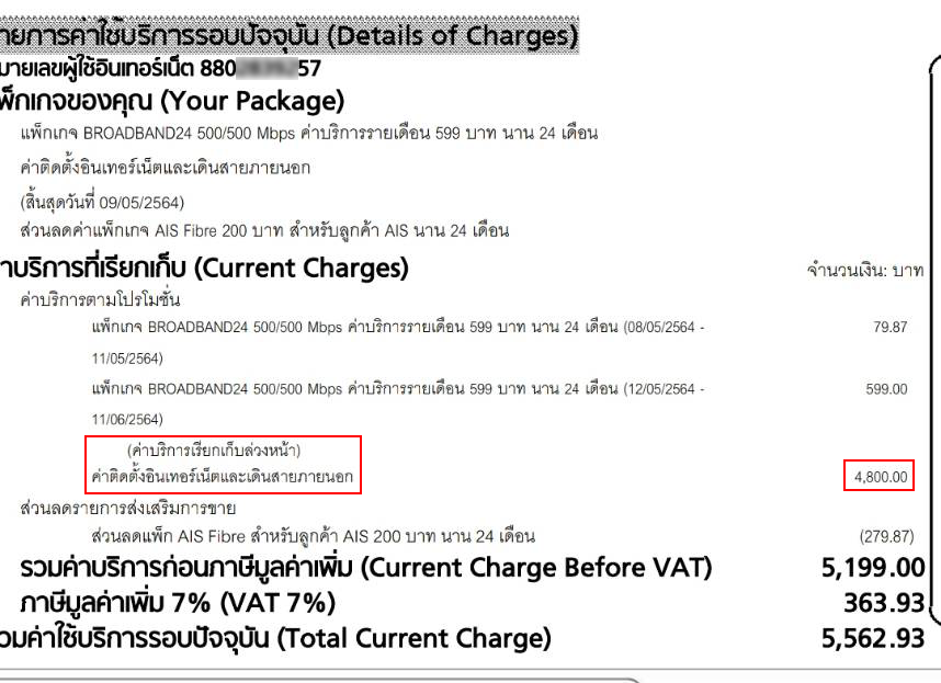 อยากสอบถาม พึ่งติดตั้งอินเตอร์เนตไปประมาณ อาทิตย์กว่า (880-----57) อยากสอบถามว่า มีค่าติดตั้งอินเตอร์เนตและเดินสายภายนอก เก็บล่วงหน้าด้วยหรอครับ ทำไมไม่แจ้งก่อนติด รวม 5562 บาทไหนคอลเซ็นเตร์ที่โทรมาให้ติดตั้งบอก จะจ่ายต่อเมื่อยกเลิกสัญญาก่อนกำหนด และคิดเป็นรายเดือนที่เหลือ ทั้งหมดคืออะไร? ตอบที