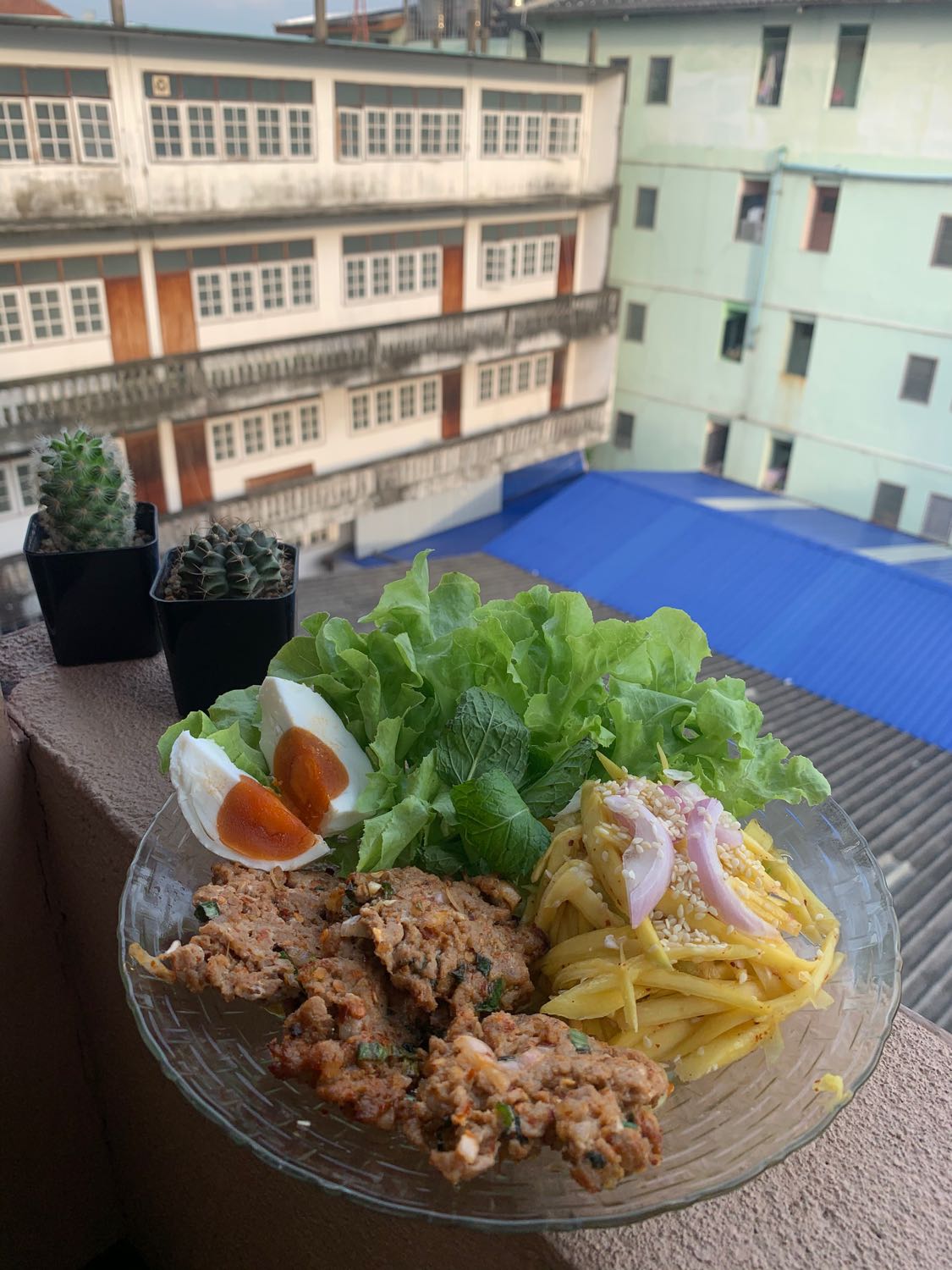 ลาบหมูทอด หม้อทอดไร้น้ำมันค่ะ กินคู่กับผักสลัด เครื่องเคียงยำมะม่วงไข่เค็มหรือเปลี่ยนเป็นไข่ต้มได้ค่ะ