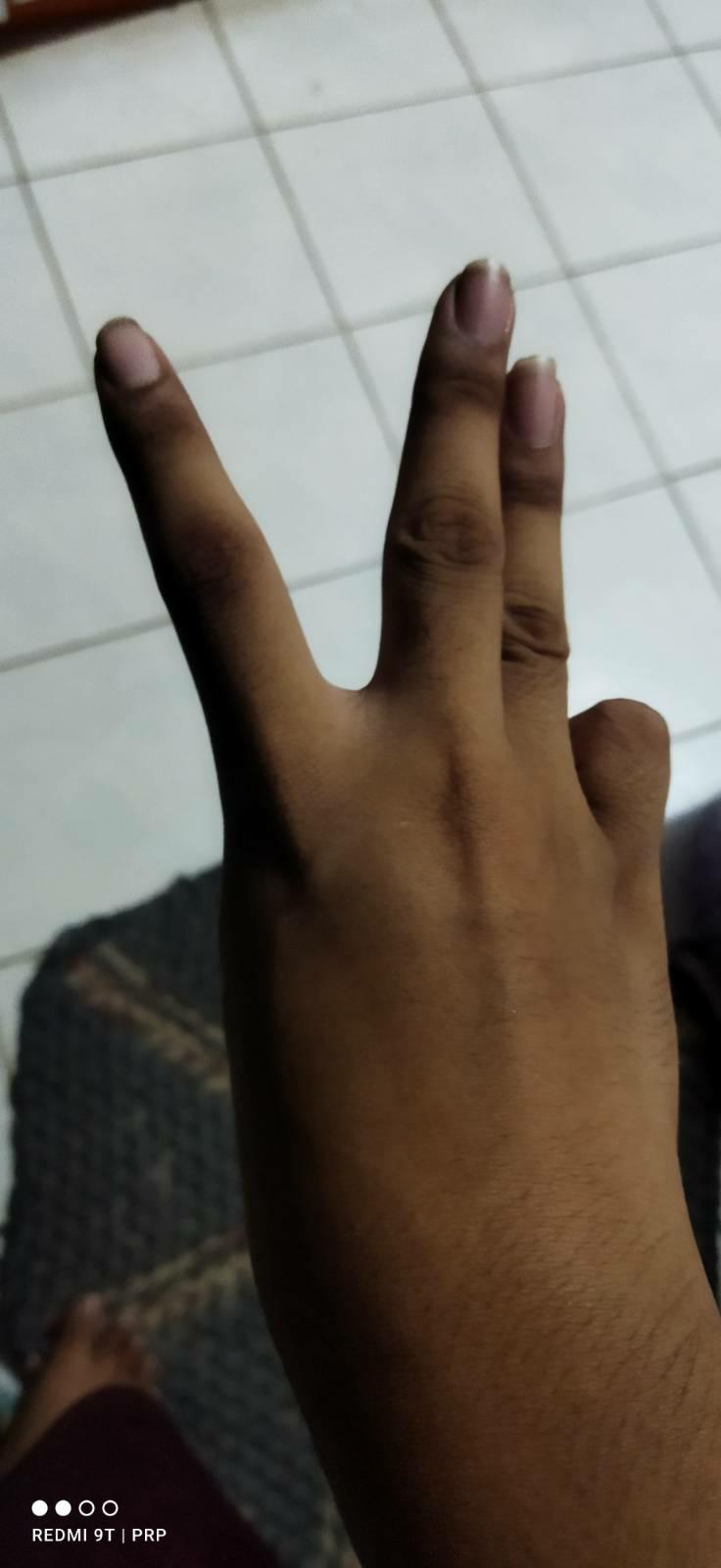 พอดีว่าเกิดอุบัติเหตุต้องเย็บแผล 15 เข็ม ตรงหลังมือแผลที่เย็บอยู่บริเวณกึ่งกลางระหว่างนิ้วชี้กับนิ้วกลาง ซึ่งตอนนี้นิ้วชี้กับนิ้วกลางงอลงมาสุดไม่ได้ มันรู้สึกตึงๆ ที่แผล แต่นิ้วโป้งนิ้วนางและนิ้วก้อยง