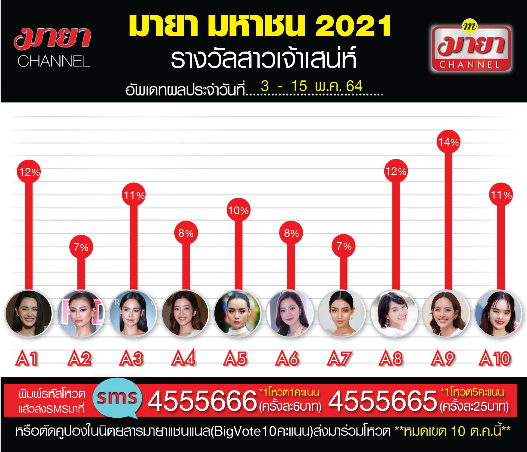 ผลโหวตสาขารางวัลเจ้าเสน่ห์ Maya Awards 2021 ครั้งแรกมาแล้ว พิเฌอได้อันดับ 2 (ร่วมกับ ใหม่ ดาวิกา)ครับ