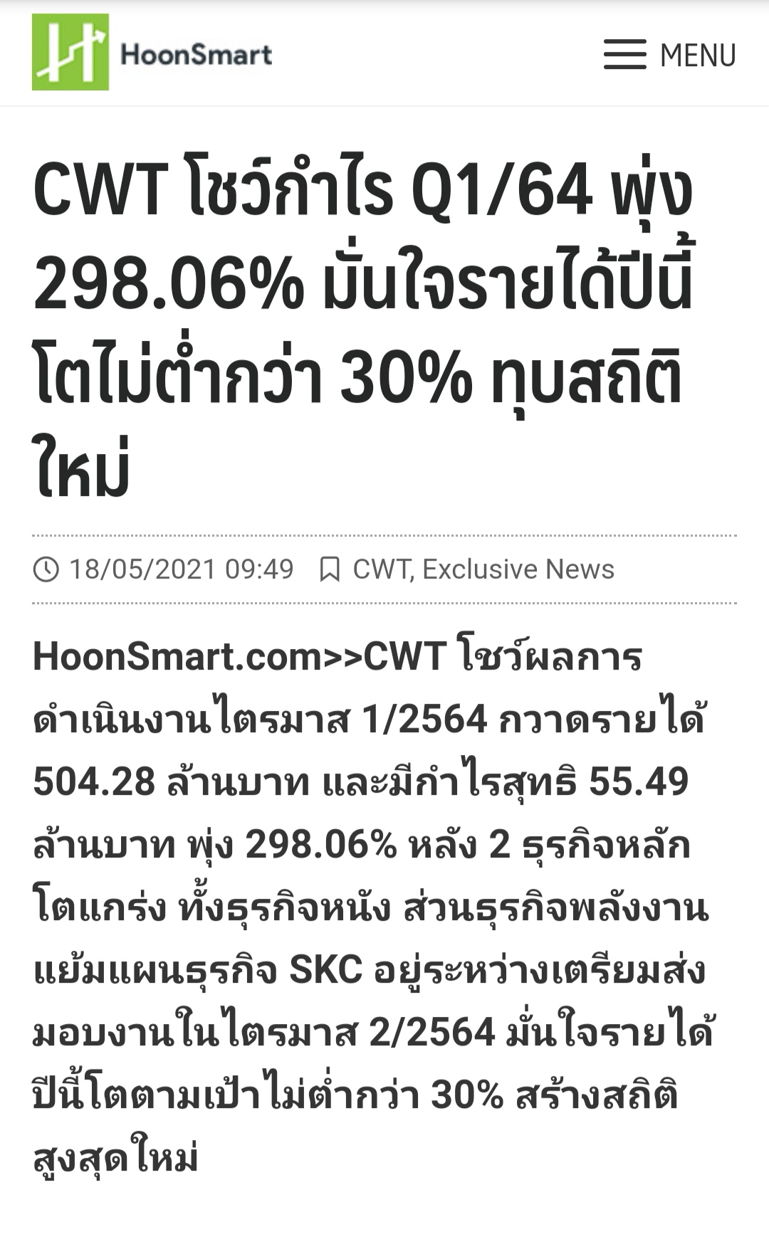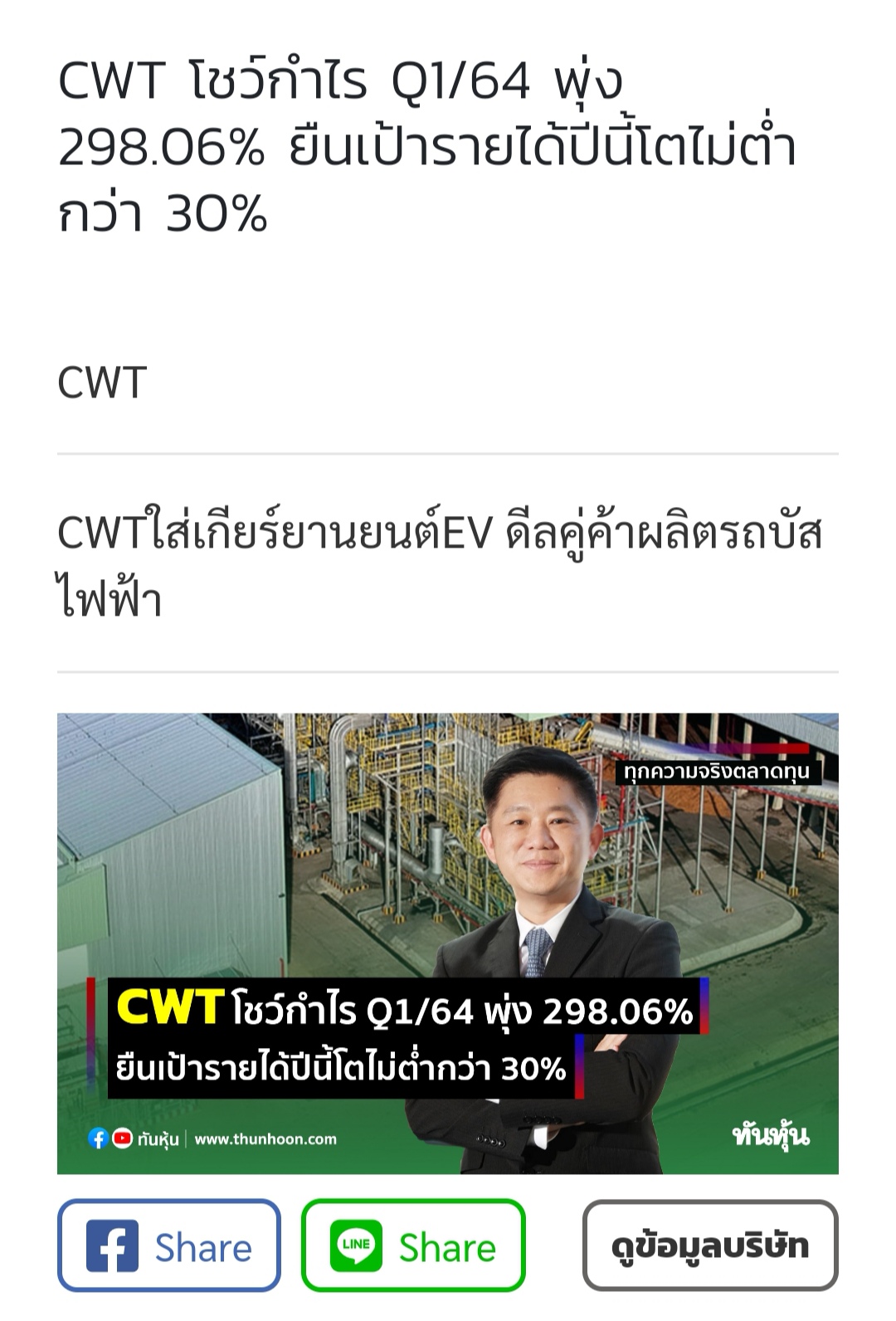 หุ้น CWT มีข่าวอะไรครับ
