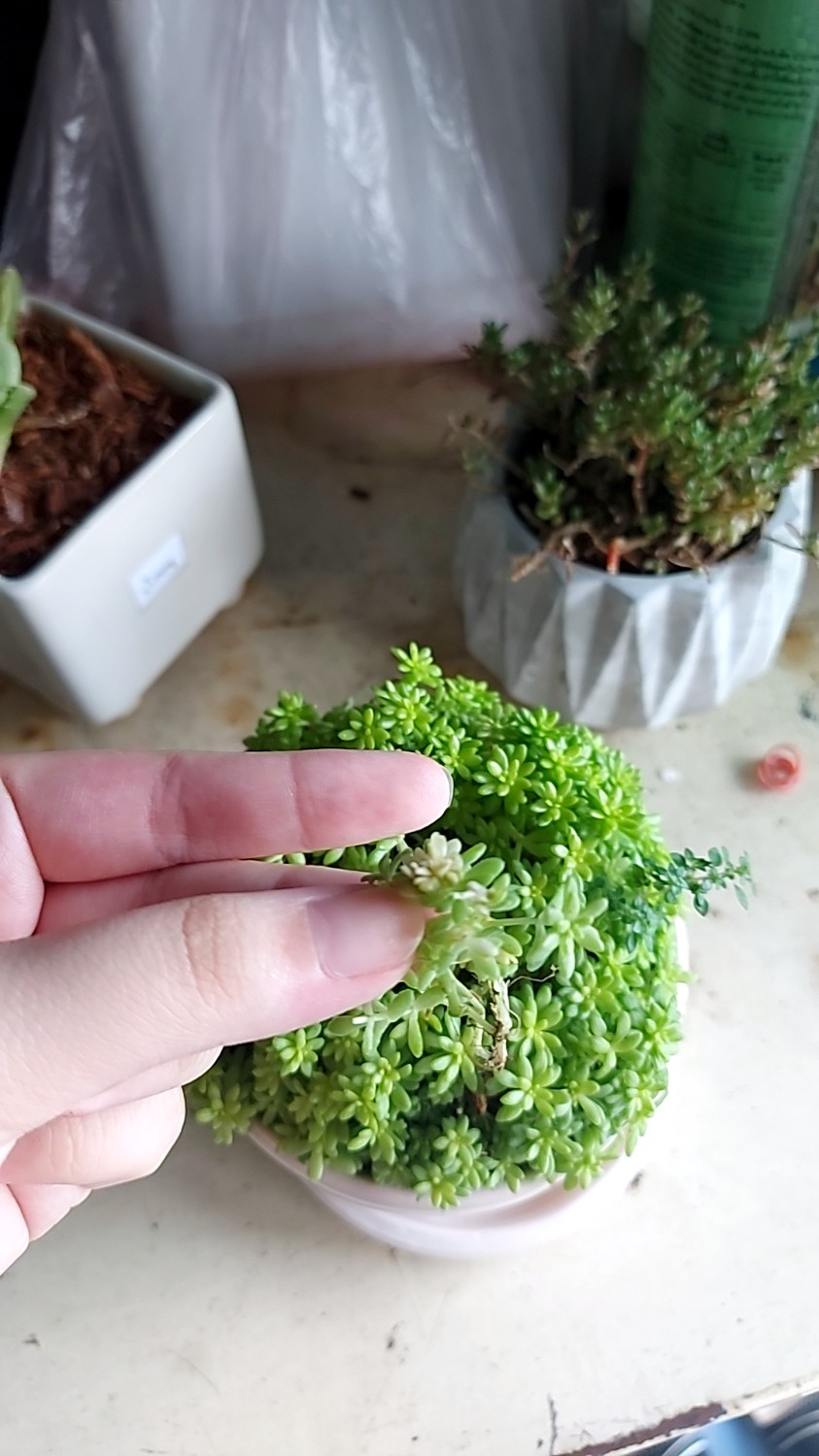 ส่วนสองรูปนี้ถ่ายเมื่อกี้เลยค่ะ มีจุด ๆ นึงที่มันขาวด่างเลย เลยลองจับๆดู ปรากฎว่าตรงจุดนั้นน้องหลุดออกมาทั้งรากเลยค่ะ ;-;