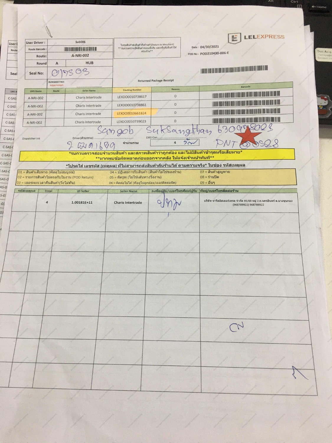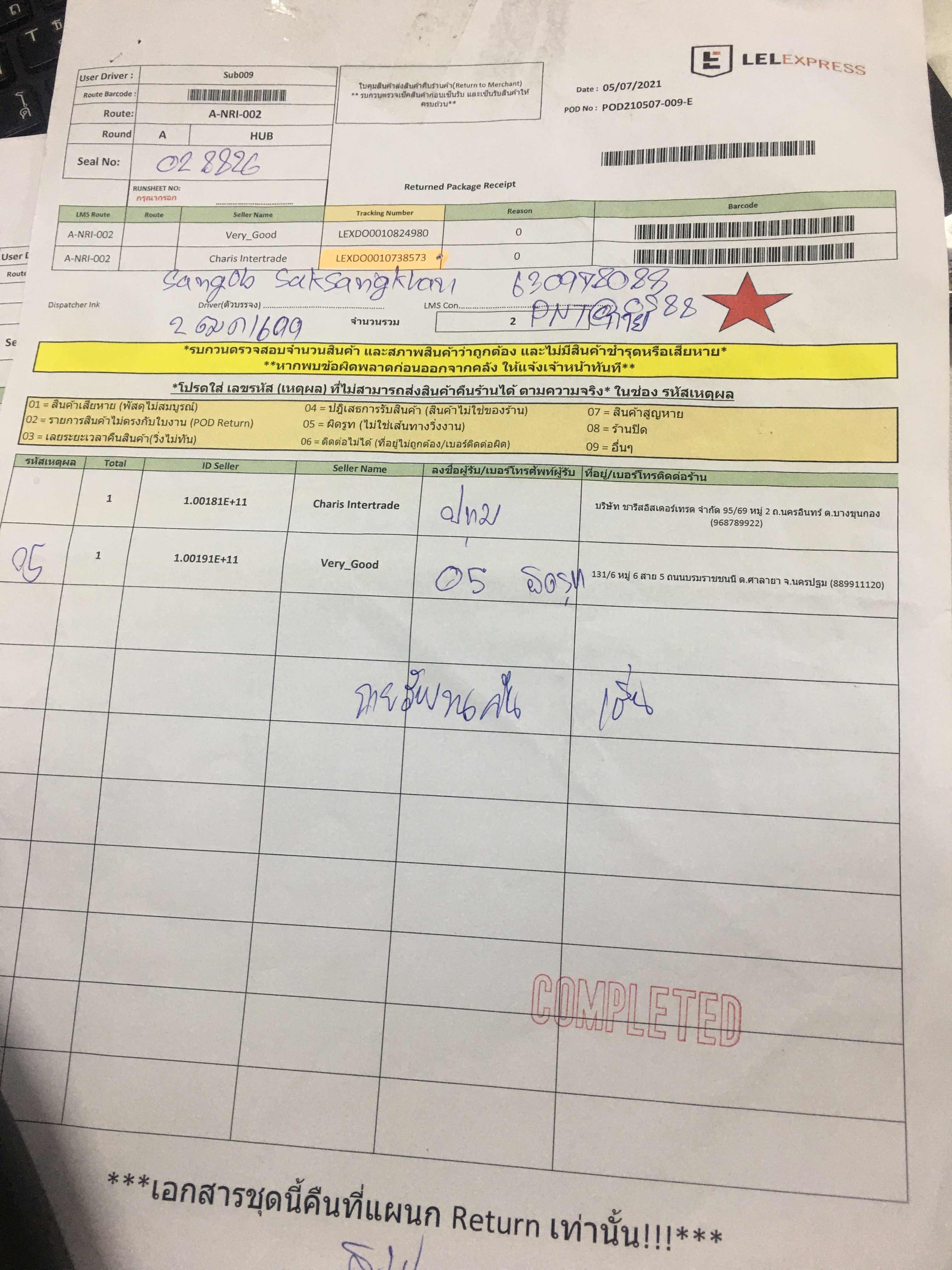 เราเป็นร้านค้าที่ขายของในลาซาด้า มีสินค้าที่ส่งไม่สำเร็จหรือลูกค้าปฏิเสธการรับสินค้าที่ต้องส่งคืนให้กับทางร้าน ช่วงเดือนเมษายนมีทั้งหมด 5กล่อง แต่ทางร้านได้รับคืนเพียงแค่ 3กล่อง ในวันที่มาส่งสินค้าคืน แม่บ้านของร้านเราเป็นคนออกไปรับสินค้า ทางลาซาด้ามากดออด สักครู่เดียวแม่บ้านก็เอาสินค้ามาให้แต่มีแค่ 3 กล่อง เราก็ถามแม่บ้านว่าที่จริงต้องมี 5 ทำไมมีแค่ 3 แม่บ้านตอบว่า พนักงานขับรถบอกว่ามีอีก 2 กล่อง แต่หาไม่เจอ และเห็นพนักงานพยายามรื้อหาของอยู่พักนึง แม่บ้านจึงบอกว่าเดี๋ยวหาเจอแล้วค่อยเอามาส่งใหม่ก็ได้ เนื่องจากพนักงานคนนี้เคยมาส่งของที่บ้านเราก่อนหน้านี้แล้ว พนักงานลาซาด้าถามว่าแม่บ้านเราชื่ออะไร และไม่ได้ให้เซ็นเอกสารใดๆ