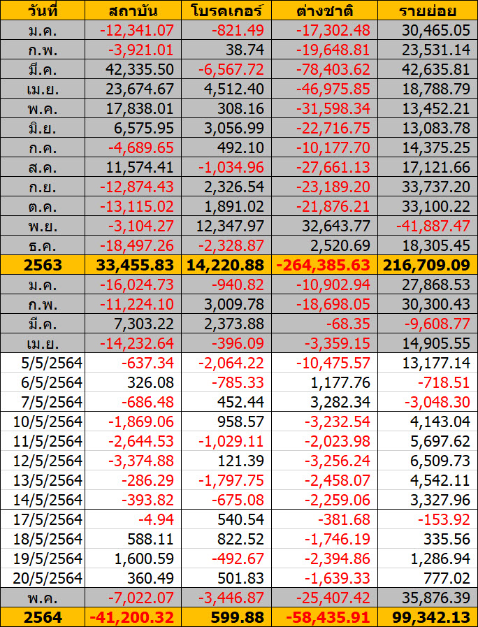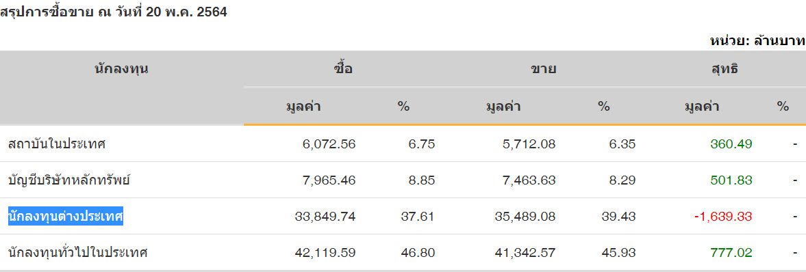 Sinthorn Summary 20/5/2564 : ต่างชาติขายสุทธิ -1,639.33 ลบ.