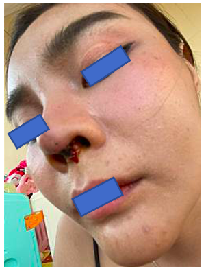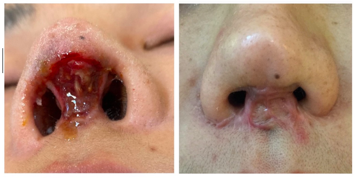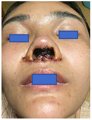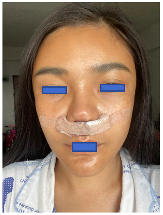 2. แผลเป็นกินถึงรูจมูก. เลยหายใจไม่ค่อยได้ ทรมานมากค่ะ