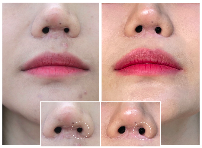 คุณหมอกรอแผลเป็นออก. และสร้างรูจมูกให้โตขึ้น. ทำให้หายใจสะดวกขึ้น. แผลที่เป็นรอยนูน. รอยแดงก็ดีขึ้นด้วยค่ะ เหมือนได้ชีวิตใหม่อีกครั้งเลยค่ะ