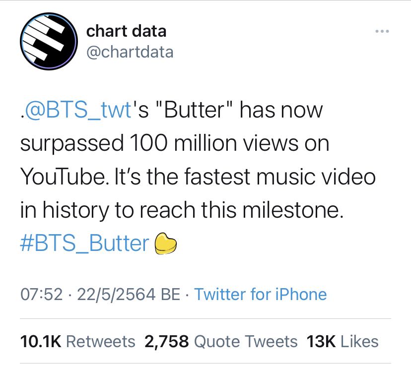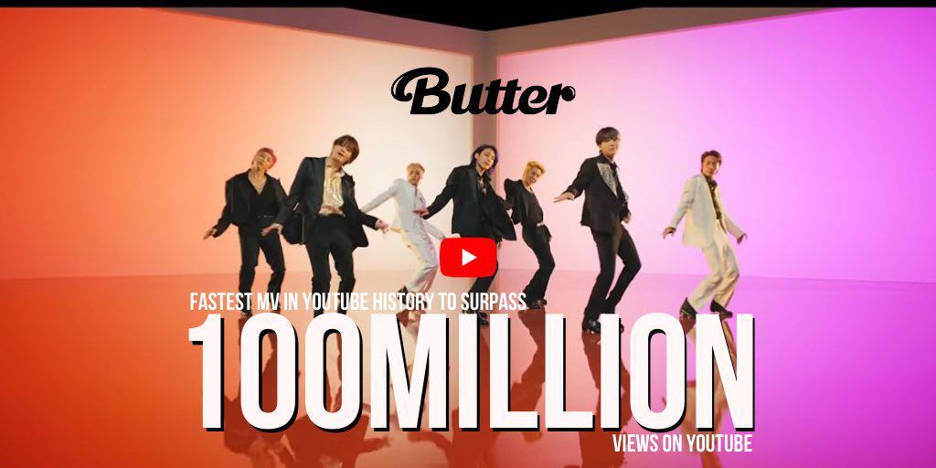MV เพลง Butter ทุบสถิติขึ้นแท่นเพลงที่มียอดวิว 100 ล้านเร็วที่สุดในประวัติศาสตร์ YouTube 🔥🔥🔥