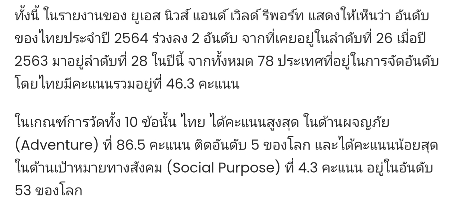 7.ไทย อันดับ 28 ของโลก 46.3 คะแนน