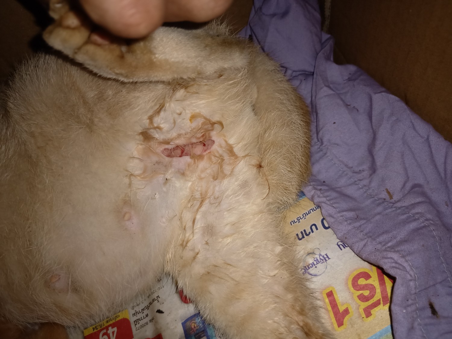 2วันก่อน น้องแมวที่บ้านถูกกัดบริเวณขาหลังข้างซ้ายตรงขาด้านในค่ะรอยแผลคล้ายๆว่าแผลฉีก1-2ซม. 2วันแรกที่โดนกัดเราไม่ให้น้องเลียแผลค่ะ ใส่ยาเป็น เบตาดีนและใส่ที่ครอบกันแมวเลียแผ