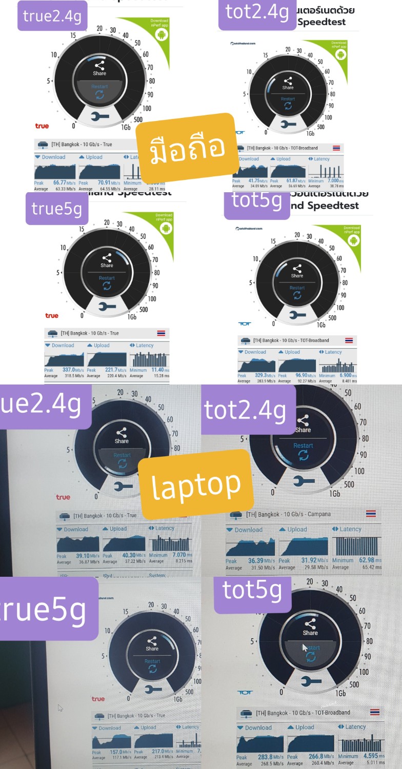 ของ True โดยเฉพาะ 5g นั่งติด router (รุ่น T3 ST-244FV2) ผ่าน laptop ได้ความเร็วเฉลี่ย 117/213