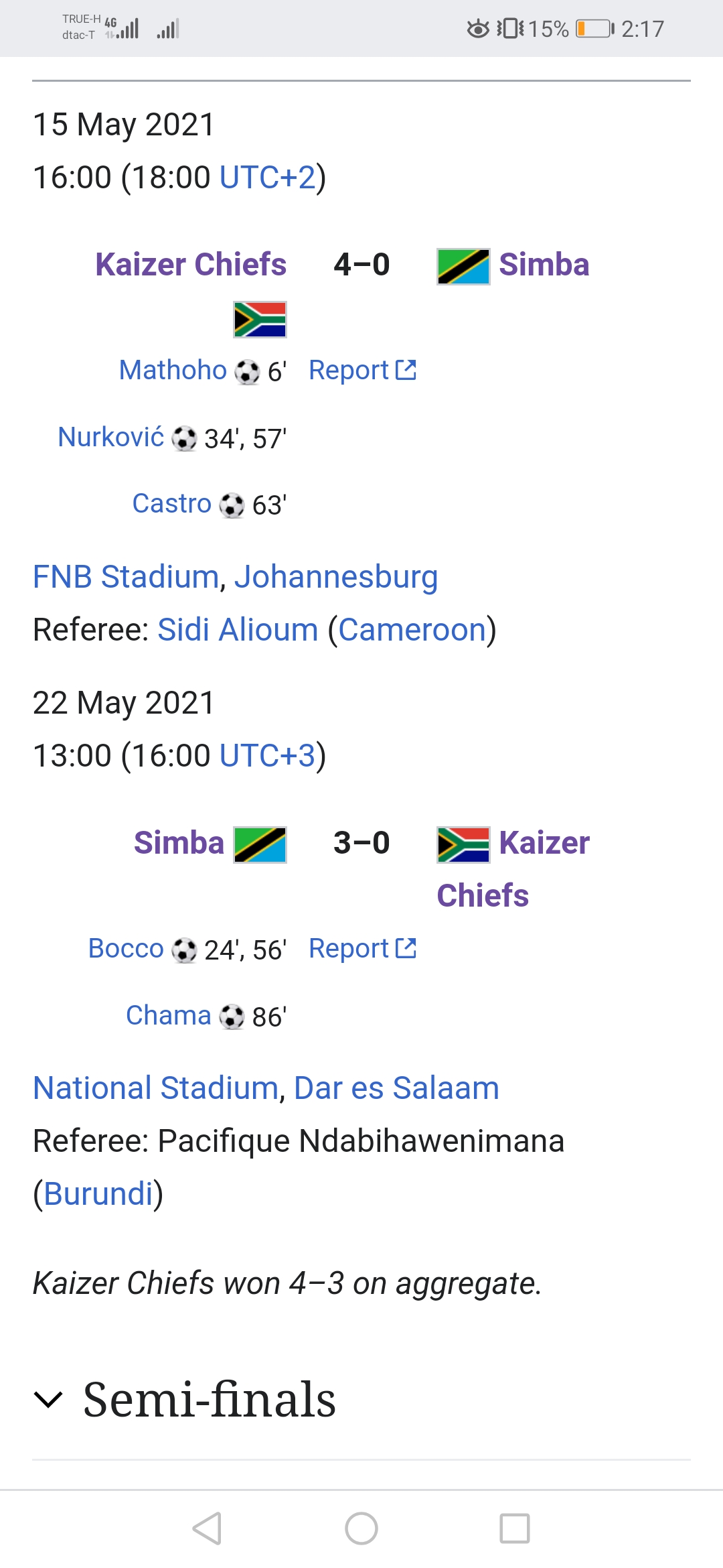 เมื่อคืนฟุตบอลCAFแชมเปี้ยนลีกรอบ8ทีม ซิมบ้าพลิกกลับมาชนะไกเซอร์ชีฟส์ ได้3-0 แต่ไม่เพียงพอต่อการเข้ารอบ เพราะนัดแรกแพ้มา4-0