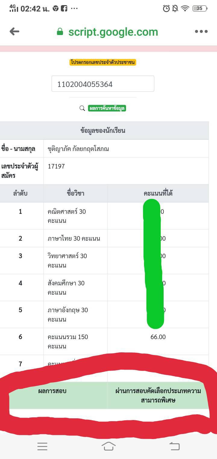 ลูกสาวเราสอบความสามารถพิเศษติดค่ะมีรายชื่อ แต่ ร.ร.ให้สอบพื้นฐานทั่วไปพร้อมกับนักเรียนคนอื่นๆอีกครั้ง พอประกาศผลทางเว๊บไซด์ไม่มีรายชื่อ แต่เช็คในข้อมูลรายบุคคลมีชื่อลูก..ตอนนี้ยังไม่รู้เลยสรุปลูกสอบได้รึไม่ รบกวนผู้รู้บอกทีค่ะ