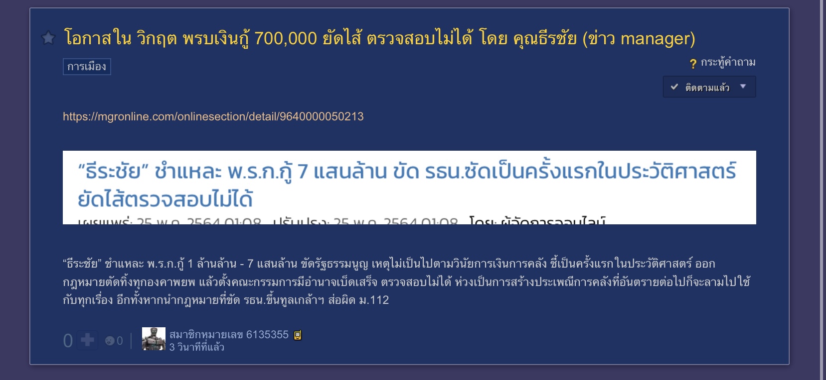 เช้านี้ เห็นกระทู้ งบเงินกู้ 700,000 ล้าน แว๊บๆ เข้าไปดูก็หายไป