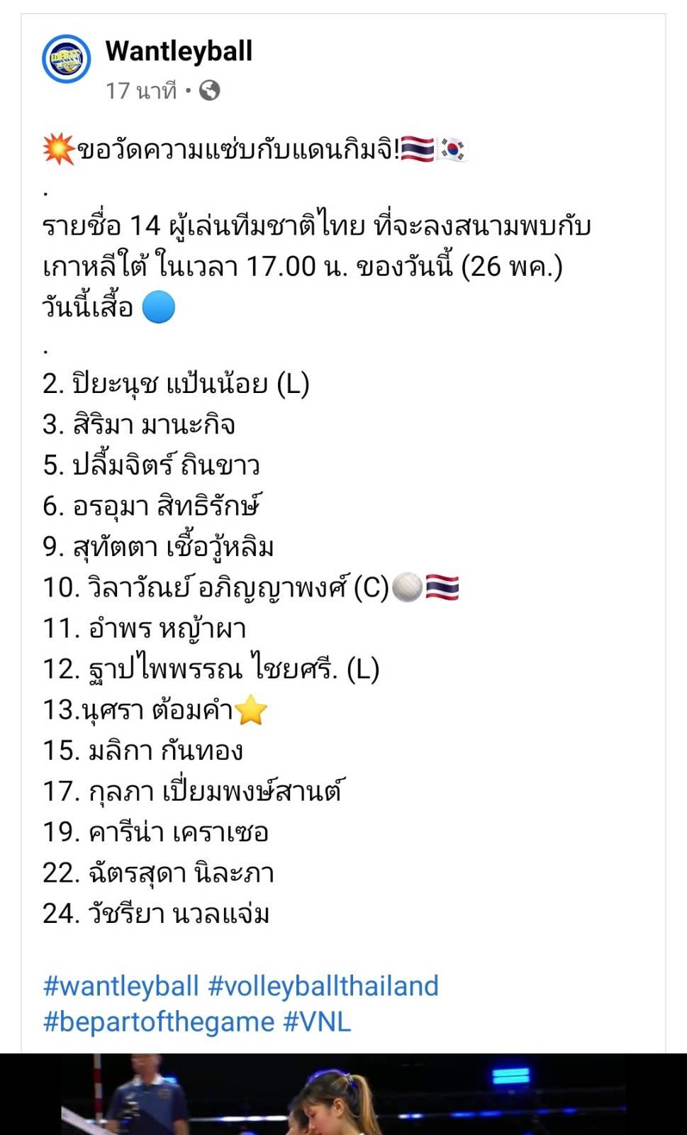 รายชื่อผู้เล่นไทย นัดเจอเกาหลีใต้วันนี้ครับ