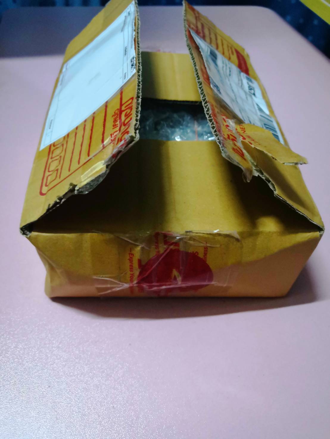 กล่องที่เขาส่งมาถึงเรา เรากำลังจะส่งกลับ แต่ถ้าส่งไปสภาพนี้ ขนส่งไม่น่าจะกล้ารับ เราเลยเอากล่องใหม่ใส่ซ้อนเพิ่มไปค่ะ