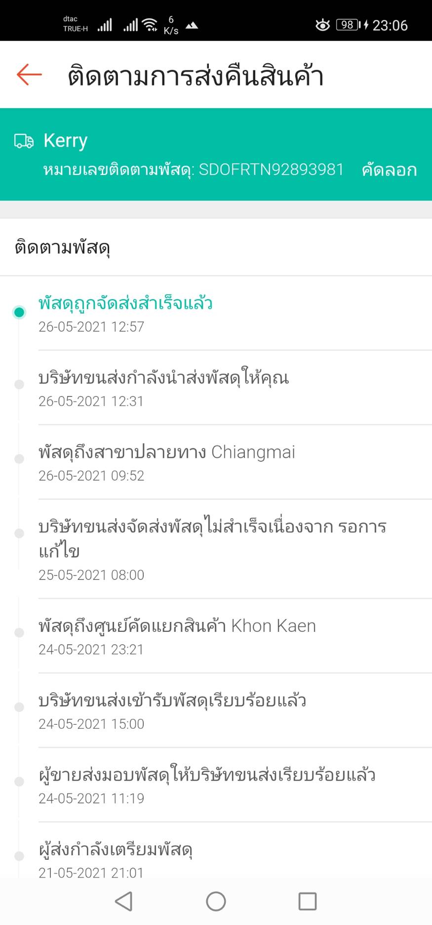 ส่งไปวันที่ 24 ของไปถึงขอนแก่น 25 แจ้งว่าส่งไม่สำเร็จ เนื่องจากรอการแก้ไข
