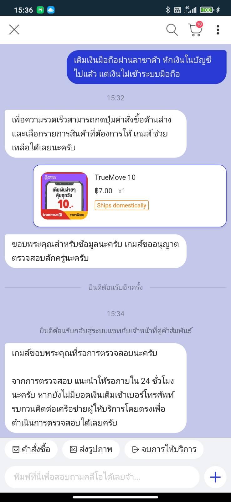 ทรูช่วยตรวจสอบหน่อยครับ เติมเงินผ่านลาซาด้าแต่เงินไม่เข้าระบบ