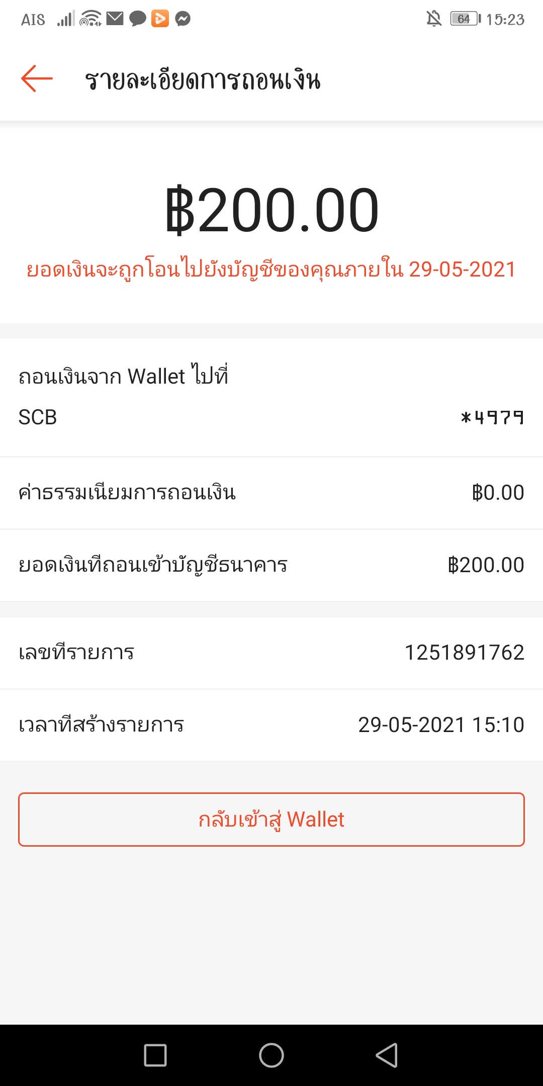 คือเราโอนเงินจากช็อปปี้เข้าบัญชเรา แต่ป่านนี้เงินยังไม่เข้า แต่ในรายการขึ้นว่าจะโอนภายในวันที่29 อยากทราบว่าเงินจะเข้าตอนไหนคะ