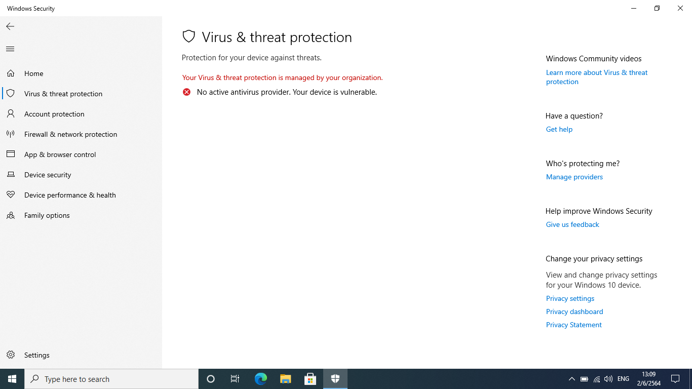 ผมใช้win10 เปืดใช้งาน สแกนไวรัสไม่ได้ตรับ มีรูปให้ดู ผมต้องทำไงครับ