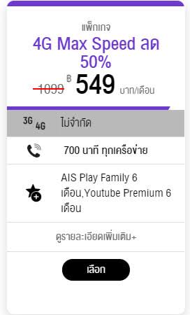 โปรย้ายค่าย AIS 4G ulimited 549-