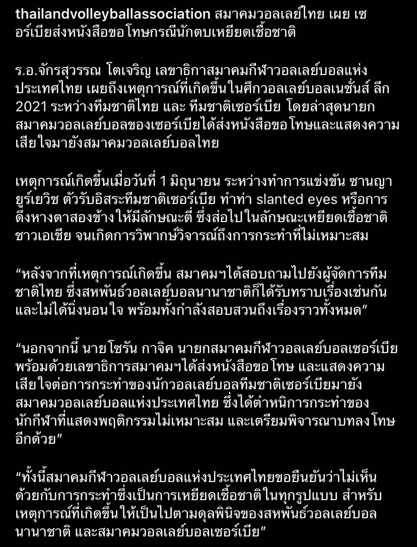 TVAเผย! เซอร์เบียส่งหนังสือขอโทษแล้ว!