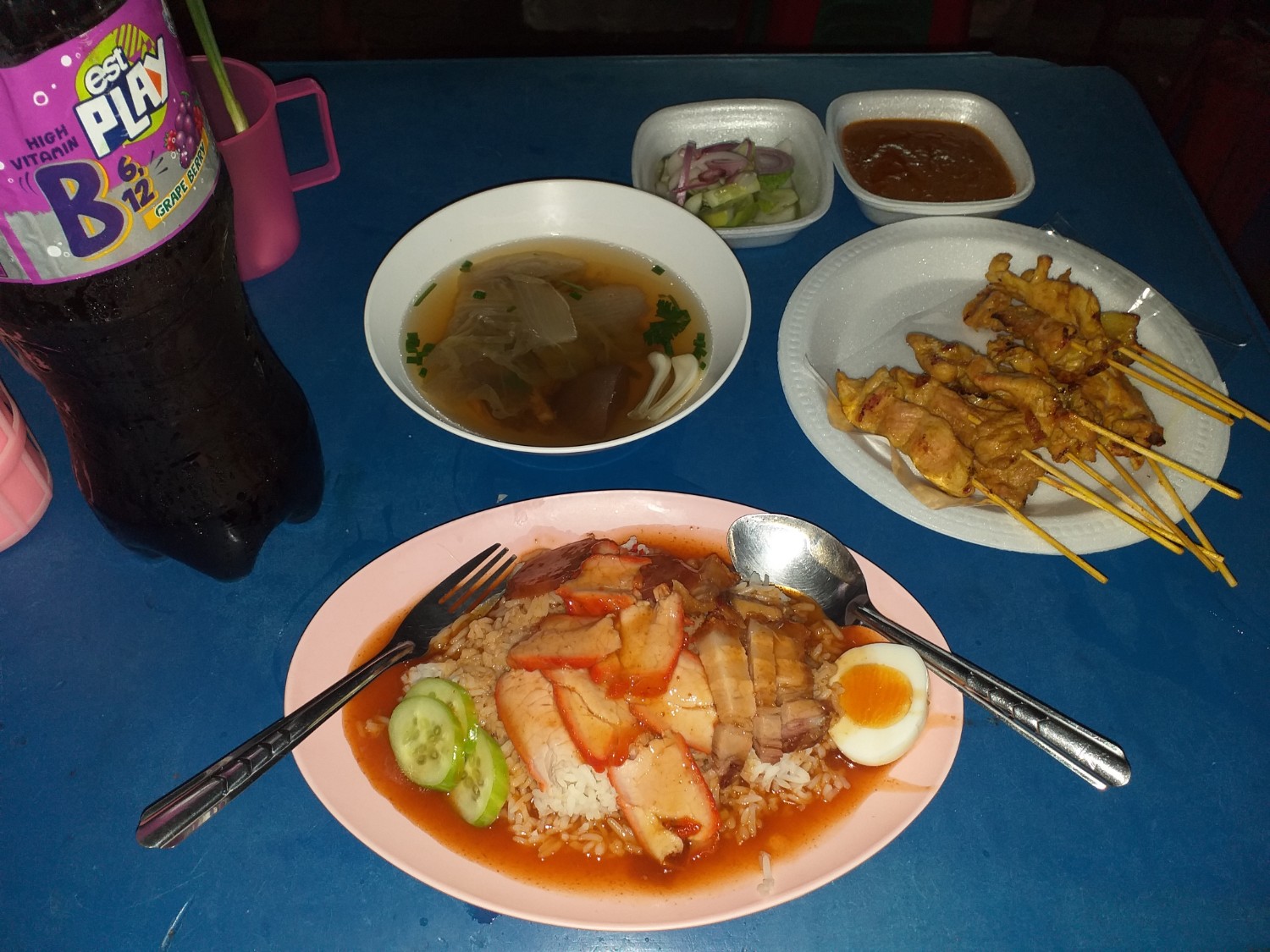 พอร้านอาหาร เริ่มมาขายวันแรก เราก็ไปกินจริงๆ ไม่ต้องกินทิพย์ละ กินจริง จ่ายเงินจริง ให้เงินหมุนเวียน ข้าวหมูแดง หมูเตะ