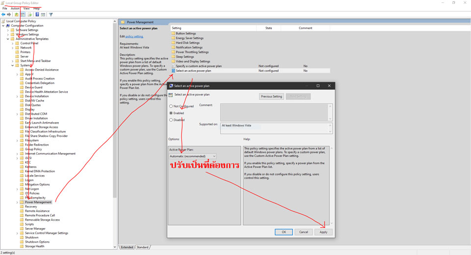 บางที่ก็ปรับเป็นhighperformance ได้นะเเต่ พอปรับเเล้วผมรีสตาร์ตหรือปิดเครื่องคอมเเล้วเปิดใหม่มันก็จะเปลี่ยนพลังงานเป็นpowersaver ตลอด