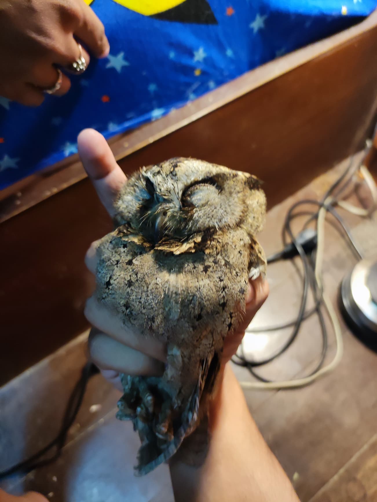 พอดีมีลูกนกเค้าแมวตกอยู่หลังบ้าน เวลา 20.30 ตอนนี้น้องไม่มีแรงเลยครับ เบื้องต้นตรวจดูแล้วไม่มีแผลภายนอกครับ