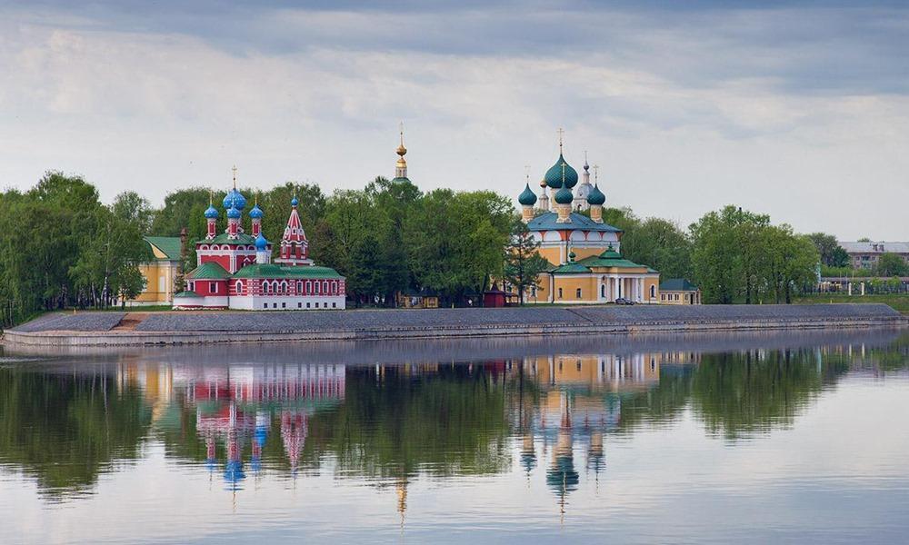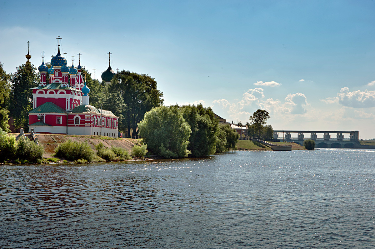 เมืองประวัติศาสตร์ Uglich (ก่อตั้งในปี 1148) ตั้งอยู่บนโค้งแม่น้ำ Volga ที่สวยมาก(ชื่อของเมืองหมายถึง 'โค้ง)