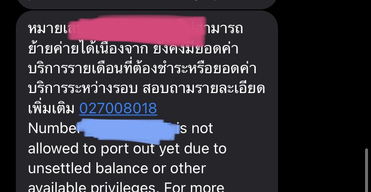 ย้ายค่ายทรูไม่ได้เพราะ “ค้างชำระค่าบริการ”