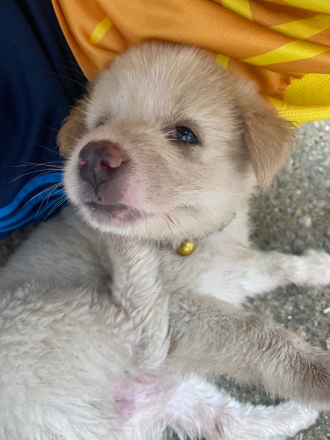 ทันหลงมาตั้งแต่เช้าครับมีเจ้าของด้วยแต่ตอนนี้ยังหาเจ้าของไม่พบเลยให้มันเข้ามาอยู่ในบ้านก่อน